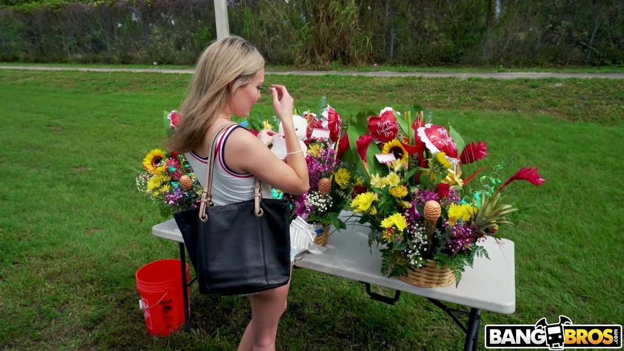 Esta semana, nos topamos con esta preciosidad comprándose flores para el día de San Valentín. Así que decidimos comprárselas como un lindo gesto. Bueno, en realidad era para que estuviera un paso más cerca de saltar dentro del autobús para que la follaran. Después de comprarle flores, empezamos a mostrarle algo de frialdad.
